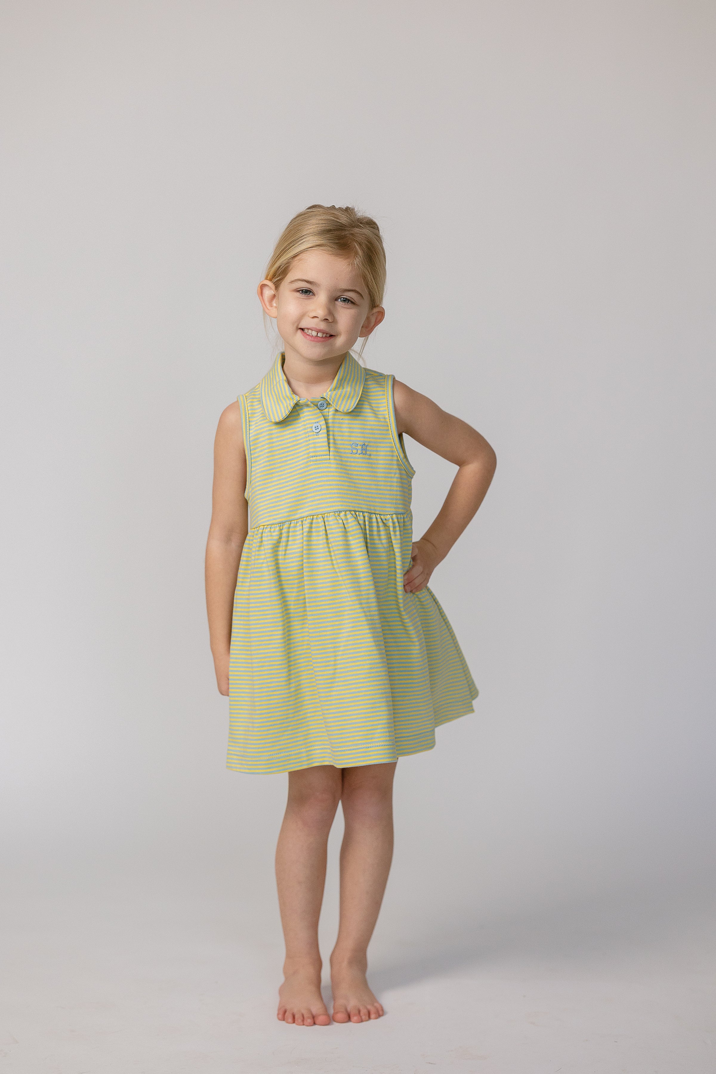 The newest dress in the Sun House lineup. This one will go with you from the park, to the pool, and even summer parties! The bright Dockside Stripe help you bring Sun House wherever you go! Our smallest sizes, 2T- 4T, come with bloomers.